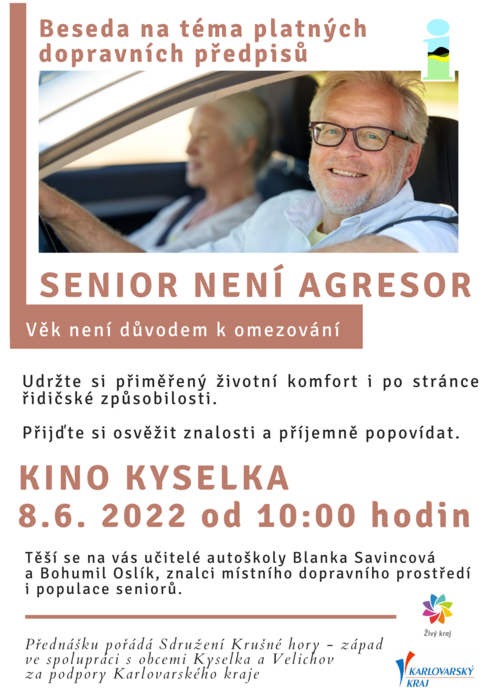 Sdružení Krušné hory západ si pro vás spolu s obcemi Velichov a Kyselka připravilo besedu na téma platných dopravních předpisů "Senior není agresor".