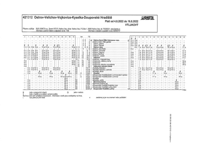 Po dobu uzavírky bude omezeno autobusové spojení - dle výlukových jízdních řádů. Každopádně ranní spoje z Velichova projedou úsekem bez omezení (4:48, 5:43, 6:52, 7:40 ve všední dny a v 6:48 o víkendu), ostatní spoje do 17:00 hod. končí v Radošově u restaurace Na Špici, ve směru od K. Varů končí v Kyselce u závodu Mattoni. Z Karlových Varů se bez přestupu dostanete autobusem do Velichov v 17:15 (každý den) a 19:10 (pouze pracovní dny).